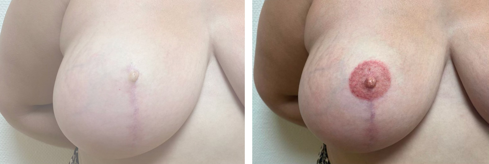 Cette technique consiste à recréer visuellement l’aréole grâce à une pigmentation très précise, afin de redonner un aspect naturel après une reconstruction mammaire.